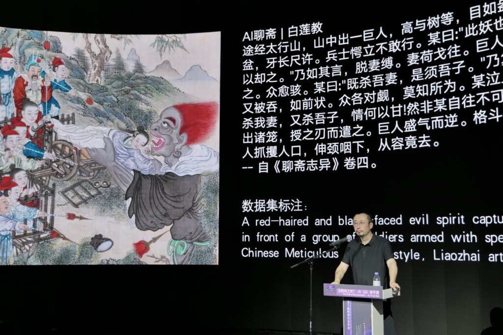罗霄的发言以“当生成成为日常:AI时代的流变、协议与遗忘”为主题,围绕生成式AI在艺术创作与日常生活中的转变展开。他从技术与艺术的双重身份出发,回顾了自己从游戏开发到新媒体艺术的实践路径,介绍了机器学习、生成式模型及其在创意生产中的应用机制。他展示了数据训练和提示词控制的创作过程,并梳理了生成艺术从算法规则到AI模型学习的演进逻辑,探讨技术系统中的协议、流变与记忆机制。