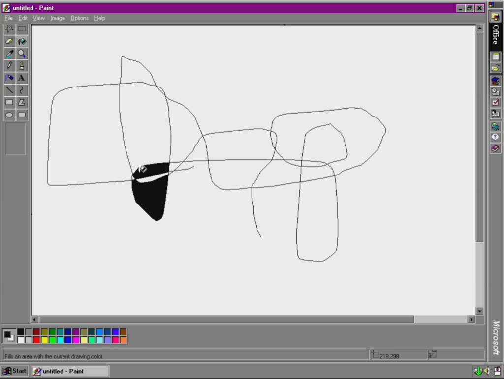 好的,在总结之前,我还有两点要补充。其一关于我的应用实践,为了完全在Windows 95桌面上制作一部电影,我们在某个片段中借助了Ms Paint(系统自带画图程序)。因此,靠着能运行Windows 95系统的硬件,不借助任何模拟器,我们就创作了这部名为《启动我》(start me up)的影片。