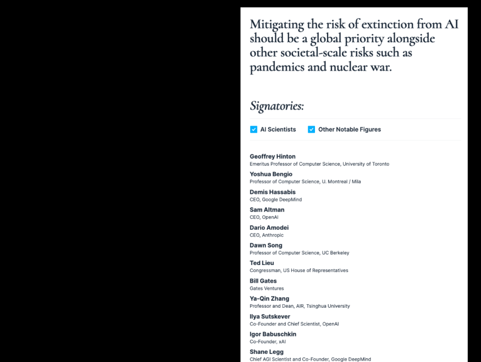我将从一种责任表态开始,这种表态本身存在争议。大家可能记得,在ChatGPT发布两个多月后,出现了一封仅有一句话的公开信,声称“降低人工智能带来的灭绝风险应与应对疫情、核战争等社会级风险同样成为全球优先事项”。对于那些希望就人工智能的意义展开民主对话的人而言,一个爆红的聊天机器人与某种可能导致人类灭绝的想象风险之间,存在着巨大且难以弥合的鸿沟。但参与此事的并非一群极端分子,而正是人工智能领域的核心领袖们。这种对技术风险的极端想象引起了我的浓厚兴趣,为此我向英国广播公司提议制作一档广播纪录片,探讨为何人工智能领域的新主宰者们会开始讨论世界末日,为何以世界末日般的视角来看待这种风险。