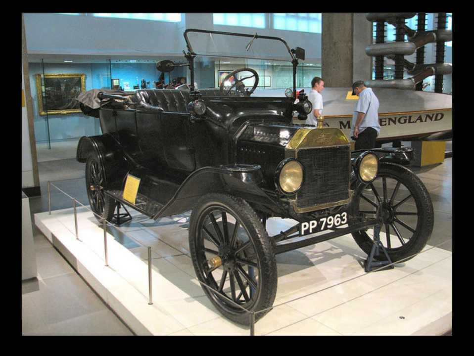 下面这个例子,是我认为的一种非常典型的“寻常技术”,同时也是一件值得我们思考的技术产物。上图是伦敦科学博物馆的展品,有人认得吗?这是福特T型车(Ford Model T),一款极具象征意义的汽车。它之所以具有标志性,并不是因为它是首款汽车,也不是因为它是最好的,而在于其亲民价格真正让普通大众也能够拥有汽车。在20世纪第一个十年,T型福特也许比任何其他发明都更推动了这项技术向中产家庭普及,它既引发了一系列社会变革,也迫使社会直面一场结构性的转型。