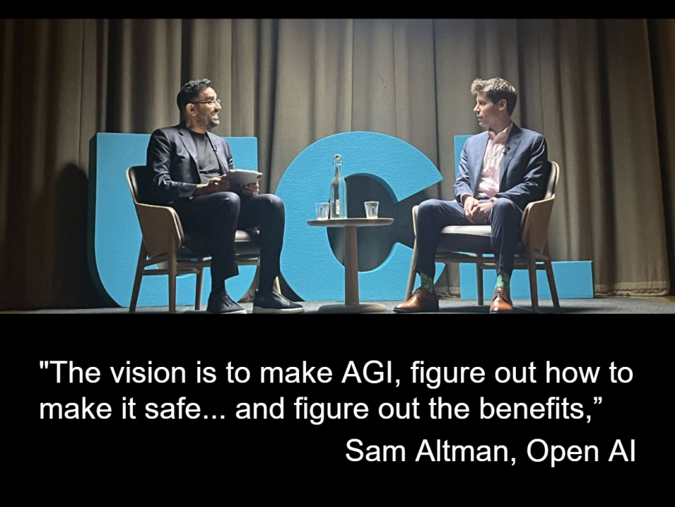让我们再度回到ChatGPT发布的时间点。山姆·阿尔特曼(Sam Altman)在 ChatGPT 发布后不久,展开了全球巡回之旅,而他在英国的停留点之一,就是我所在的大学——伦敦大学学院(UCL)。最初令我惊讶的是,阿尔特曼参与的许多此类对话都糟糕透顶,几乎没有人真正追问他为什么要做他正在做的事情。但当你追问“这项技术究竟能带来哪些益处?你所做的一切是为了什么?”时,事态就变得有趣了。他并未停留在比如“聊天机器人可以用来做这个、做那个,现在就能实现这些功能”这种具体阐述,他在这里采取“跳跃式逻辑”,把话题直接推向未来:“我们的终极目标是创造通用人工智能,并解决其安全性问题。”在这场辩论中,“安全”有着非常特定的含义。至于技术的益处是什么,那是之后再讨论的事情。这种态度本质上是拒绝就其技术产品的益处与目的接受问责。