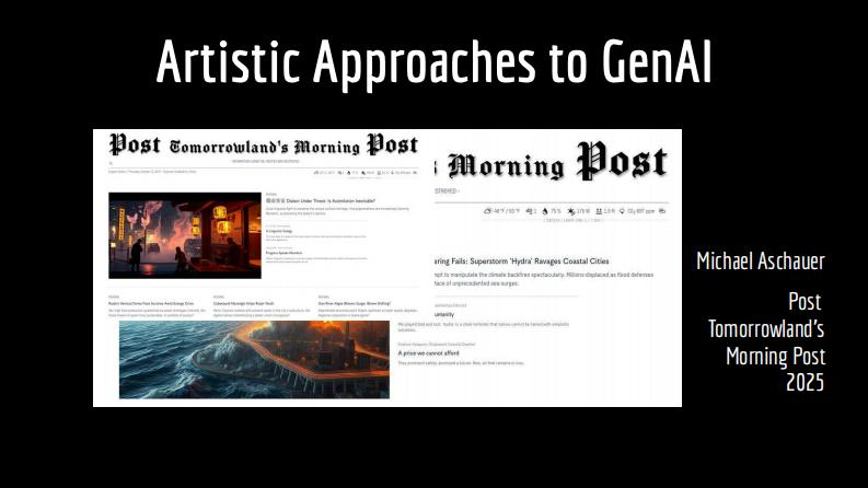 A6:我并不是想说生成式人工智能对你的下一个项目一定有好处,我觉得我们得回到之前提到的一个关键点:如何确保这些输出是高质量的思想或高质量的虚构,而不是那种中庸、安全的企业产品流水线。所以我认为,在这些例子中至少前两个以及第三个例子中,如果用标准模型去处理,是行不通的。它们探讨了约束条件,并思考在这些约束下你能做些什么,而这也让“幻觉”特性更为明显。因为它不再是某种全能化的实体或“化身的神”。