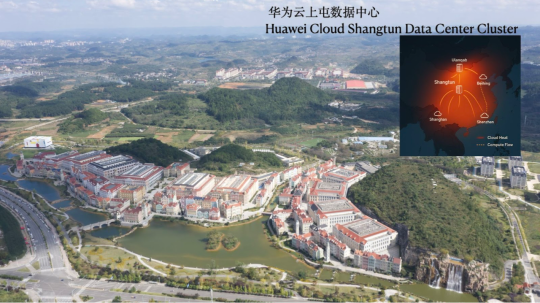 如在贵州。这是华为中国一个非常大的电话跟计算机公司,他们在贵州做了很多这种云上贵州的东西。你可以看右上角的图,它是华为云上屯数据中心,分了好几块在不同的地方。这是另外一家腾讯公司,也是在贵州的7星数据中心。
