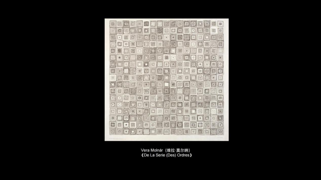 经过前面这些铺垫,大家可能已经简单了解了我是如何拿AI去创作,以及AI为什么可以被拿来做创作。那么接下来聊一下之前的算法生成艺术和AI之间的区别。这里可能有些关键词像“规则”、“流变”等等。所谓生成艺术其实是规则运行的痕迹。规则其实就是协议了,我们作为艺术家,尤其是跨媒体专业的艺术家,在创作算法生成艺术的时候,要先用代码来制定好一系列的规则。有了规则以后,通过一些实时的处理来最终形成自己的作品。艺术家不是为了直接绘制出最终的作品,而是在创作过程的起点,先制定一套规则。像维拉·莫尔纳(Vera Molnár)这套经典的作品《无序》,我们可以看到它背后有一种充满逻辑感和数学感的规则。