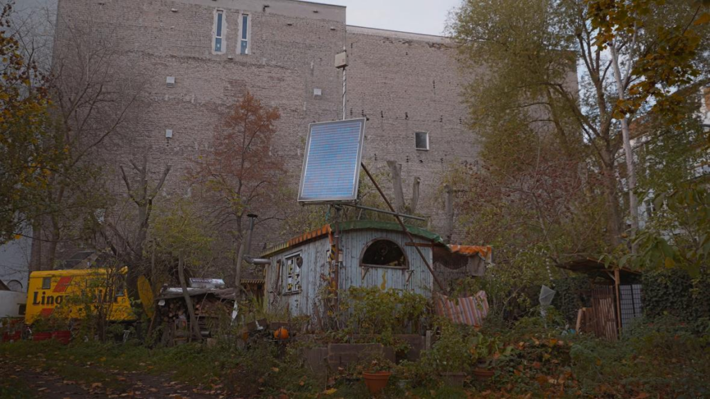 这意味着,在这样的网络中,不再有中心化的互联网服务提供商。你获得的网络连接来自你的邻居,而不是来自一家像西班牙电信(Telefónica)那样的中心化公司所铺设的光纤。于是,拉蒙的工作由此将连通性本身转化为一种政治行为:它表明,重新思考互联网的物理与社会基础设施,可以成为抵抗行为,一种从市场逻辑中夺回自主权的方式。接着,我去了柏林,拜访了埃莱克特拉·瓦根拉德(Electra Wagenrad)——一位黑客、工程师,以及德国“自由无线网络运动”(Freifunk)4的长期活动者。Freifunk 起初是一个社区无线网络项目,通过开源路由器来建立本地的点对点网络。对埃莱克特拉来说,这些网络不仅仅是技术系统,它们更是无政府主义互助愿景的体现。她住在画面中那个拖车社区里,过着脱离电网的生活。由于难以接入传统的互联网基础设施,她干脆自己建造了属于自己的网络基础设施。她相信,建设互联网基础设施本身就是一种政治,若不喜欢这个系统,就自己建一个。Freifunk将不起眼的Wi-Fi路由器重塑为团结工具,让邻里直连,无需企业中间商。