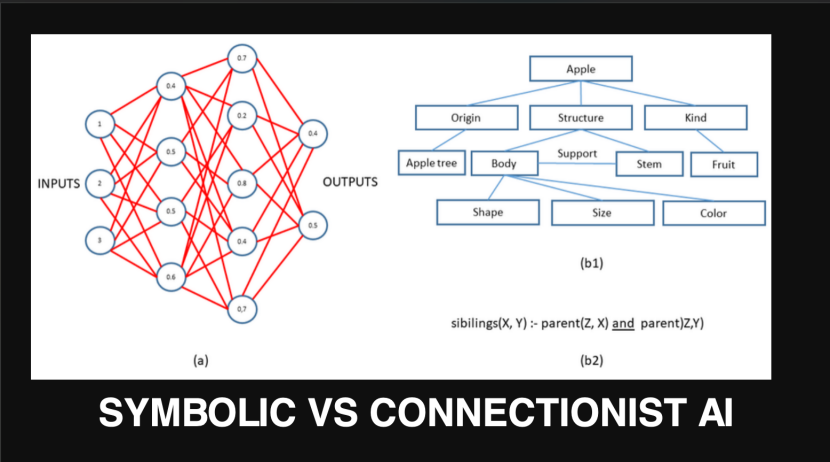 话虽如此,我上一部影片的经验或许能为下一部指明方向。今天的研讨主题是“静默编辑”,探讨人工智能的界面如何开始塑造、乃至限制我们的世界。过去我们通过溯源、加工与阐释与知识互动,通过原始文本,以及由社会机构和共识所构建的解释体系。而现在,我们的交互方式变成了“提示词”与“预测”。如果说拍摄《互联网的终结》这部纪录片教会了我什么,那就是:基础设施会塑造并约束我们与文本的关系。因此,要理解正在发生的事,我们必须仔细审视人工智能自身的基础设施。回顾人工智能基础设施设计的历史,可以发现其中两种主要且相互竞争的逻辑:符号主义(symbolic )与联结主义(connectionism)。符号主义 AI 试图将逻辑与事实编码进机器,使其能够推理。只要你给机器输入足够的事实与规则,它就能开始理解并推演出意义。