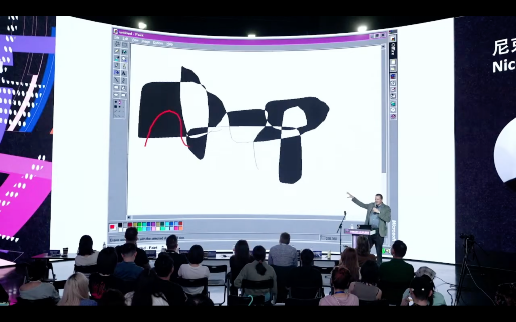 大家好,谢谢大家来到这里,也谢谢研究所邀请我参加第十届网络社会年会。今天我演讲的主题是,人们过去和现在使用电脑创作艺术的不同方式。我会将生成式人工智能的使用置于历史脉络中讨论,从我作为写作者的视角出发,主要探讨对基于大语言模型的系统的提示创作,同时也会也涉及扩散模型,和其他用于视觉艺术创作的模型。